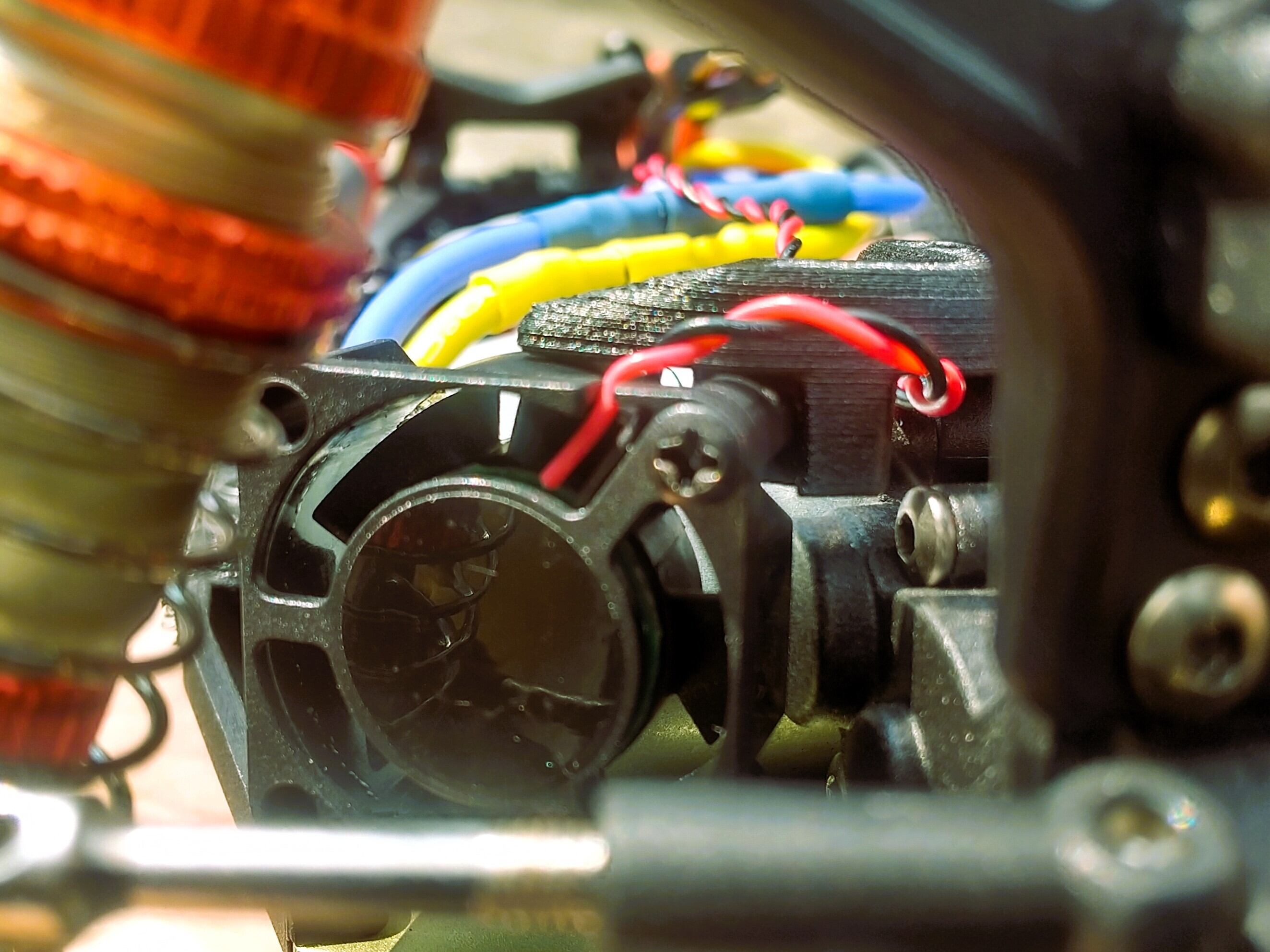 25mmクーリングファンを画像の様にモーター後方に取り付けるので、裏返して排熱ファンとしての使用を想定しています。